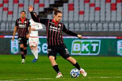TVEM February 15, 2025 Bari, Italy - SSC Bari vs US Cremonese - Italian soccer serie B 2024/25 - San Nicola Stadium. In the pic: Marco Nasti of US Cremonese scores a goal of 0-1 that was after disallowed foto emmanuele mastrodonato-ag aldo liverani sas