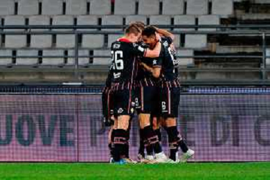 TVEM February 15, 2025 Bari, Italy - SSC Bari vs US Cremonese - Italian soccer serie B 2024/25 - San Nicola Stadium. In the pic: Mattia Valoti of US Cremonese celebrates after scoring a goal with teammates foto emmanuele mastrodonato-ag aldo liverani sas