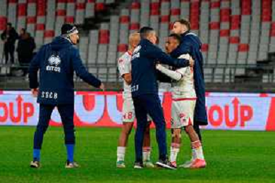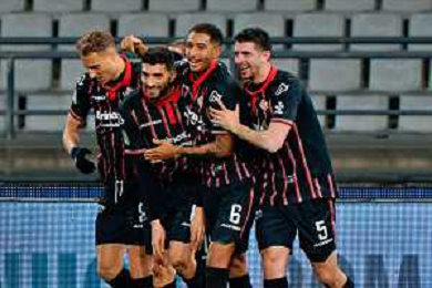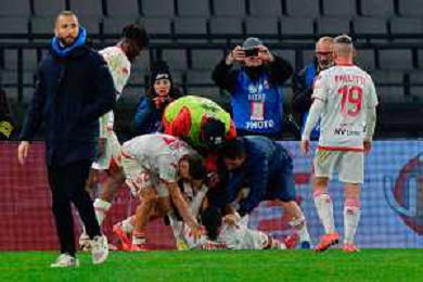 TVEM February 15, 2025 Bari, Italy - SSC Bari vs US Cremonese - Italian soccer serie B 2024/25 - San Nicola Stadium. In the pic: Mehdi Emile Dorval of SSC Bari celebrates after scoring a goal with teammates FOTO EMMANUELE MASTRODONATO-AG ALDO LIVERANI SAS