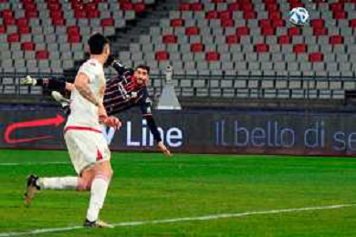 TVEM February 15, 2025 Bari, Italy - SSC Bari vs US Cremonese - Italian soccer serie B 2024/25 - San Nicola Stadium. In the pic: Mattia Valoti of US Cremonese scores a goal foto emmanuele mastrodonato-ag aldo liverani sas