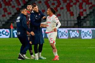 TVEM February 15, 2025 Bari, Italy - SSC Bari vs US Cremonese - Italian soccer serie B 2024/25 - San Nicola Stadium. In the pic: Mehdi Emile Dorval of SSC Bari protests after receiving racist insults foto emmanuele mastrodonato-ag aldo liverani sas