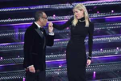 Festival Sanremo 2025 nella foto Carlo Conti e Alessia Marcuzzi 75mo Festival della Canzone Italiana - Quinta Serata Teatro Ariston - Sanremo (IM) 15-02-2025 foto Roberto Garavaglia/agenzia Aldo Liverani sas