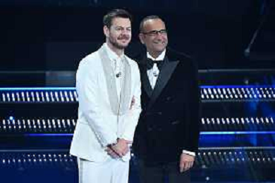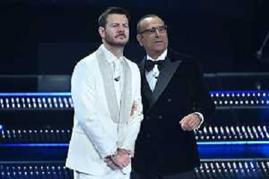 Festival Sanremo 2025 nella foto Pietro Labiola amministratore delegato TIM e sulla DX Carlo Conti 75mo Festival della Canzone Italiana - Quinta Serata Teatro Ariston - Sanremo (IM) 15-02-2025 foto Roberto Garavaglia/agenzia Aldo Liverani sas