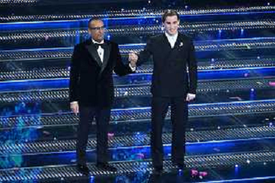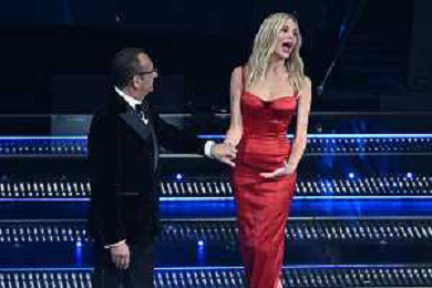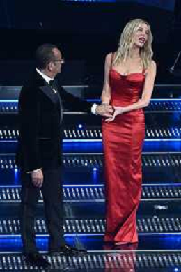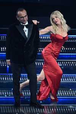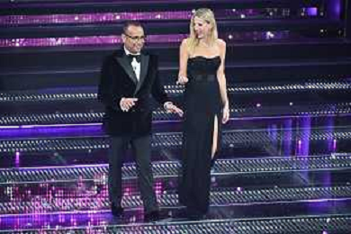 Festival Sanremo 2025 nella foto Cralo Conti e Alessia Marcuzzi 75mo Festival della Canzone Italiana - Quinta Serata Teatro Ariston - Sanremo (IM) 15-02-2025 foto Roberto Garavaglia/agenzia Aldo Liverani sas