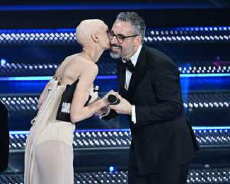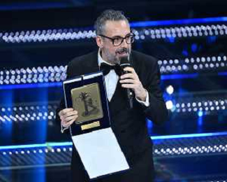 Festival Sanremo 2025 nella foto Brunori Sas vince il premio Sergio Bardotti per il miglior testo, a SX Bianca Balti 75mo Festival della Canzone Italiana - Quinta Serata Teatro Ariston - Sanremo (IM) 15-02-2025 foto Roberto Garavaglia/agenzia Aldo Liverani sas