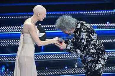 Festival Sanremo 2025 nella foto Simone Cristicchi vince il premio Giancarlo Bigazzi per il miglior componimento musicale , a SX Bianca Balti 75mo Festival della Canzone Italiana - Quinta Serata Teatro Ariston - Sanremo (IM) 15-02-2025 foto Roberto Garavaglia/agenzia Aldo Liverani sas