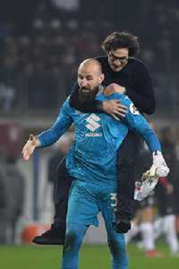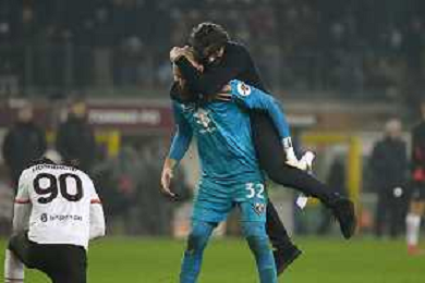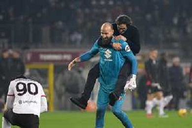 Torino 22.02.25 Stadio Grande Torino @Manuela Viganti/Ag. Aldo Liverani sas Torino vs Milan Campionato Calcio Serie A Enilive 2024/2025 26a giornata Nella foto: vanja milinkovic savic e paolo vanoli festeggiano a fine gara