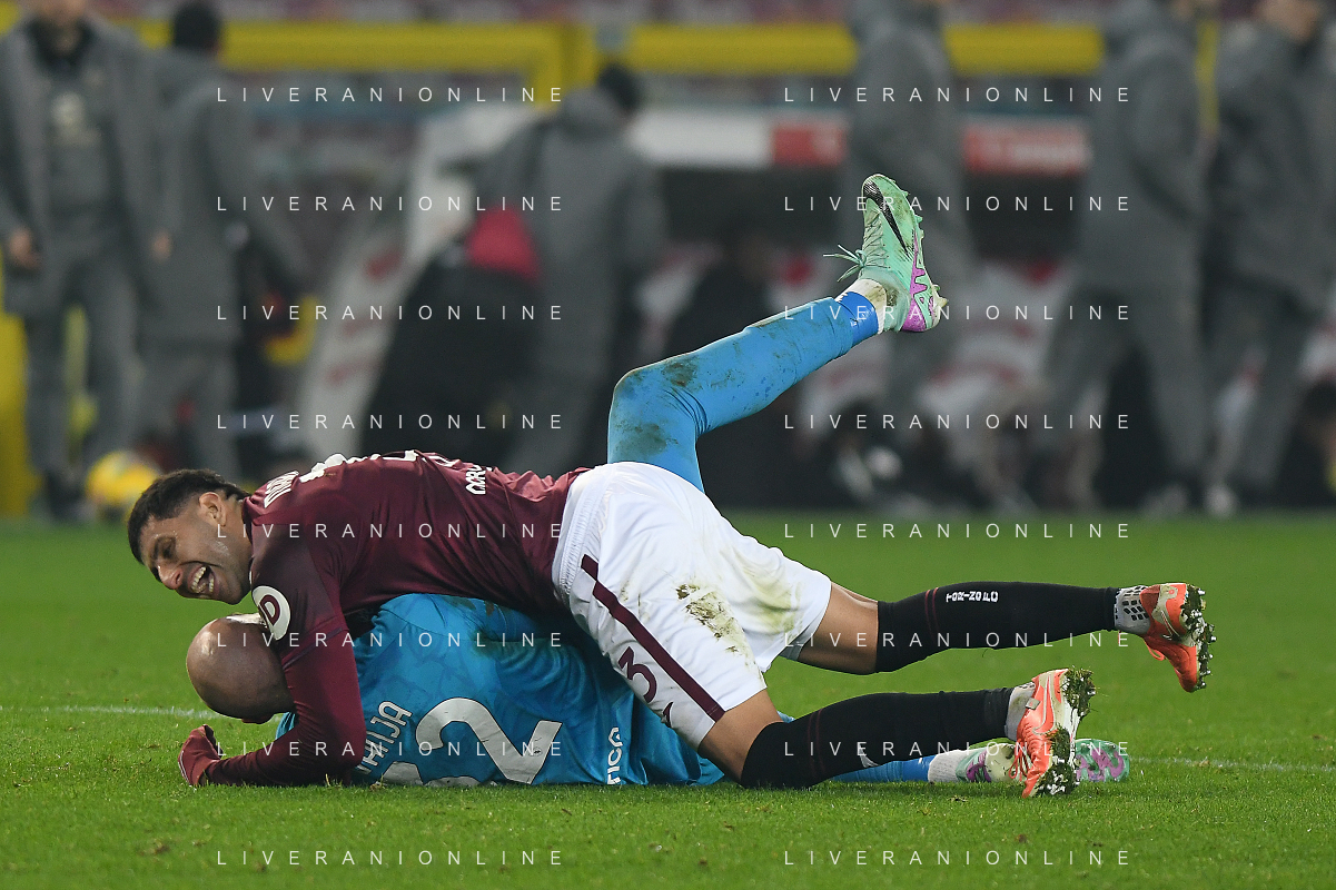 Torino 22.02.25 Stadio Grande Torino @Manuela Viganti/Ag. Aldo Liverani sas Torino vs Milan Campionato Calcio Serie A Enilive 2024/2025 26a giornata Nella foto: vanja milinkovic savic e guillermo maripan festeggiano a fine gara