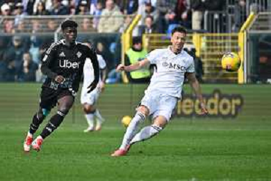 TVRG Como vs Napoli nella foto retro passaggio di Amir Rrahmani (Napoli) che diventa l'autogol per l'1 a 0 Como Como 23-02-2025 Stadio Giuseppe Sinigaglia Campionato Serie A Enilive - 26a giornata foto Roberto Garavaglia/Agenzia Aldo Liverani sas