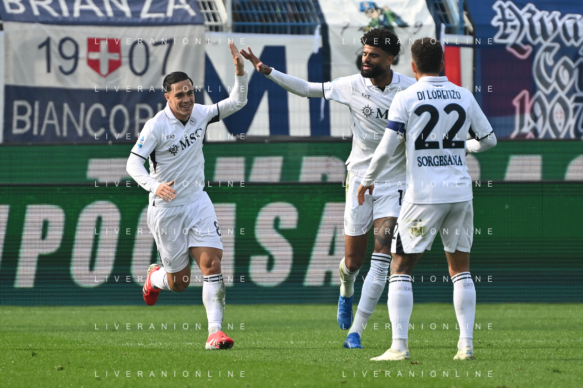 TVRG Como vs Napoli nella foto Giacomo Raspadori (Napoli) e Philip Billing (Napoli) esultanza dopo il gol dell'1 a 1 Como 23-02-2025 Stadio Giuseppe Sinigaglia Campionato Serie A Enilive - 26a giornata foto Roberto Garavaglia/Agenzia Aldo Liverani sas