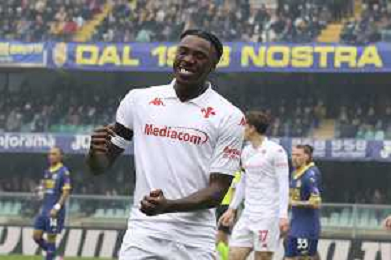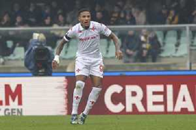 Michael Folorunsho of ACF Fiorentina during Hellas Verona FC vs ACF Fiorentina, 26° Serie A Enilive 2024-25 game at Marcantonio Bentegodi stadium in Verona (VR), Italy, on February 23, 2025. (Photo by Davide Casentini)- AGENZIA ALDO LIVERANI SAS