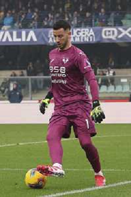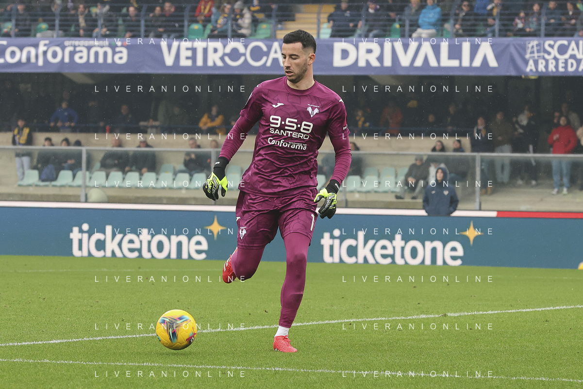 Lorenzo Montipo’ of Hellas Verona FC play the ball during Hellas Verona FC vs ACF Fiorentina, 26° Serie A Enilive 2024-25 game at Marcantonio Bentegodi stadium in Verona (VR), Italy, on February 23, 2025. (Photo by Davide Casentini)- AGENZIA ALDO LIVERANI SAS