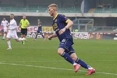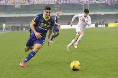 Davide Marco Faraoni of Hellas Verona play the ball during Hellas Verona FC vs ACF Fiorentina, 26° Serie A Enilive 2024-25 game at Marcantonio Bentegodi stadium in Verona (VR), Italy, on February 23, 2025. (Photo by Davide Casentini)- AGENZIA ALDO LIVERANI SAS