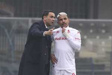 Raffaele Palladino Head coach of ACF Fiorentina speaks to Dodò of ACF Fiorentina during Hellas Verona FC vs ACF Fiorentina, 26° Serie A Enilive 2024-25 game at Marcantonio Bentegodi stadium in Verona (VR), Italy, on February 23, 2025. (Photo by Davide Casentini)- AGENZIA ALDO LIVERANI SAS