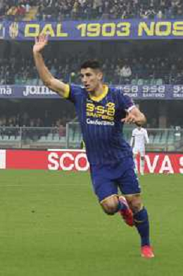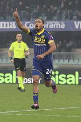 Antoine Bernede of Hellas Verona FC celebrates after scoring during Hellas Verona FC vs ACF Fiorentina, 26° Serie A Enilive 2024-25 game at Marcantonio Bentegodi stadium in Verona (VR), Italy, on February 23, 2025. (Photo by Davide Casentini)- AGENZIA ALDO LIVERANI SAS