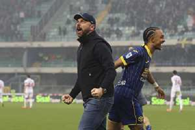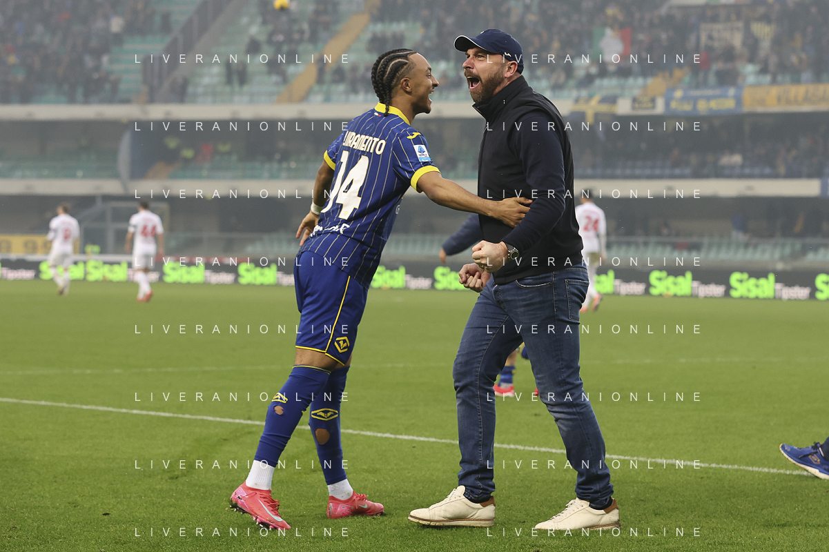 Paolo Zanetti Head Coach of Hellas Verona FC celebrates after gol of Antoine Bernède of Hellas Verona FC during Hellas Verona FC vs ACF Fiorentina, 26° Serie A Enilive 2024-25 game at Marcantonio Bentegodi stadium in Verona (VR), Italy, on February 23, 2025. (Photo by Davide Casentini)- AGENZIA ALDO LIVERANI SAS