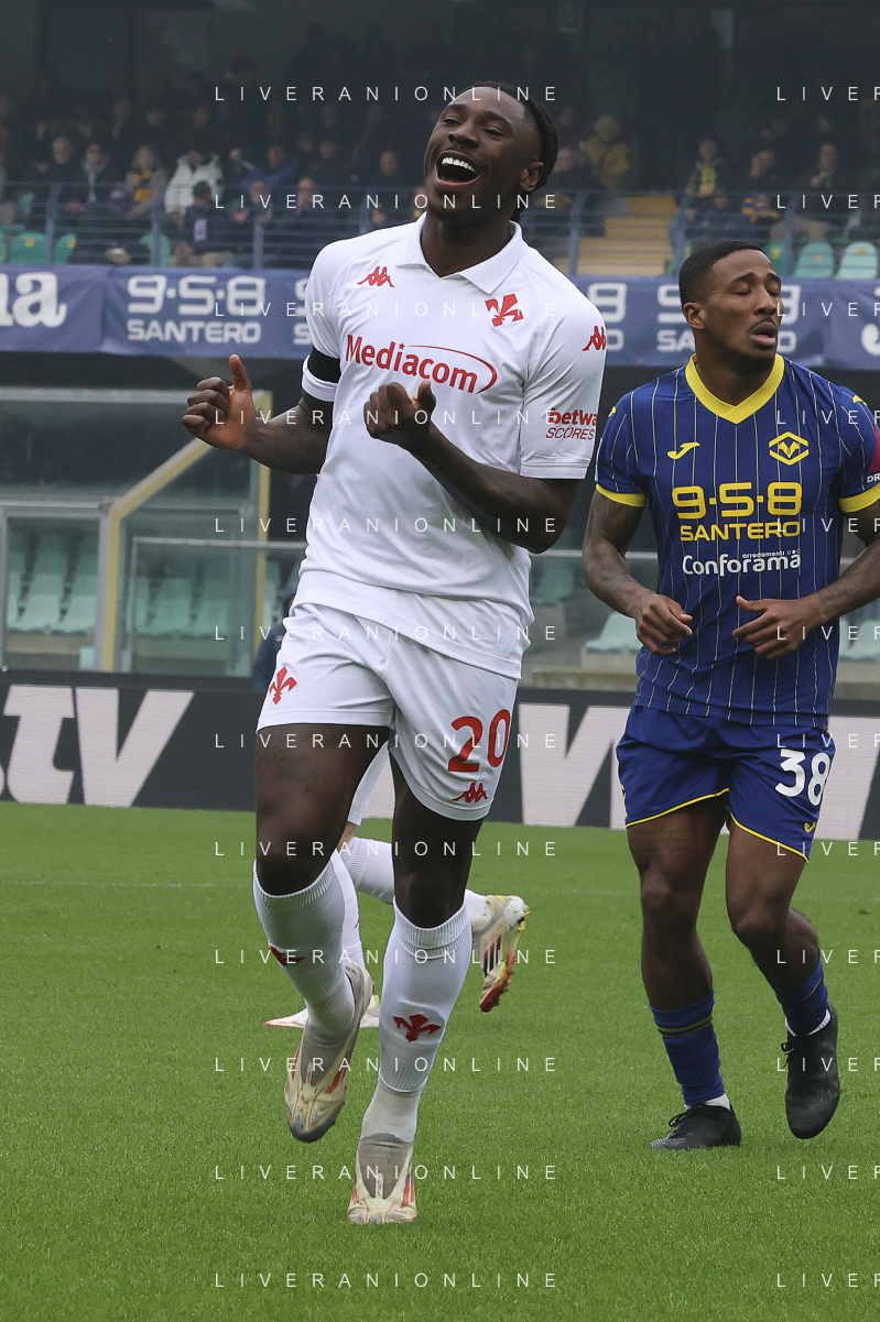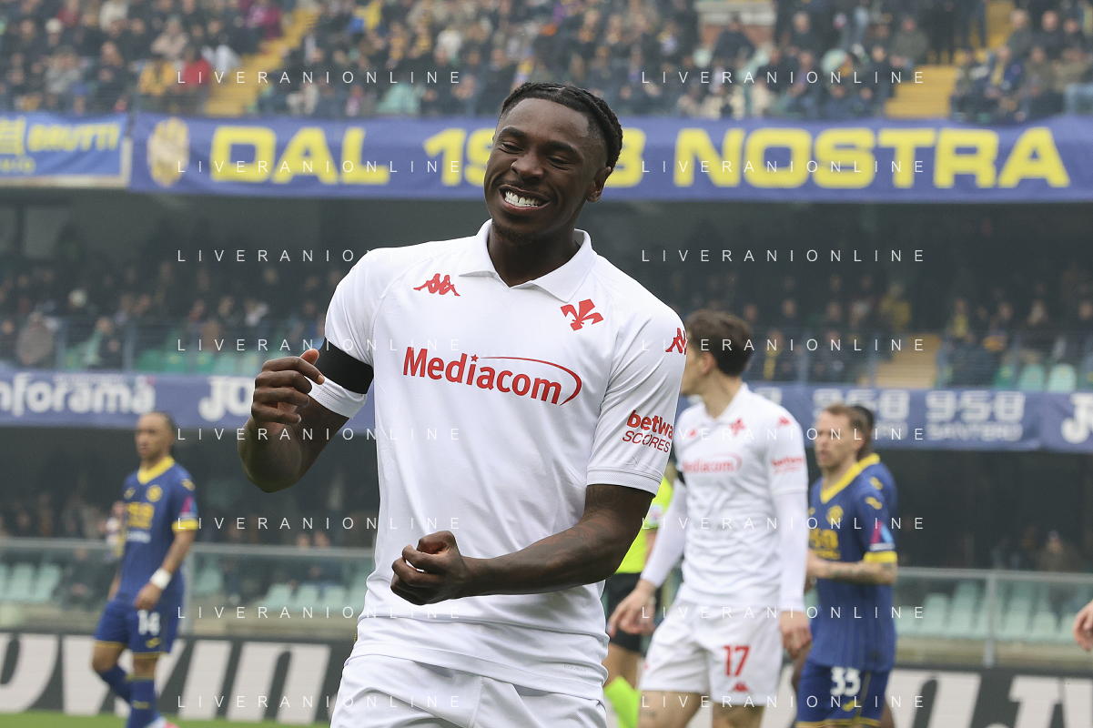 Moise Kean of ACF Fiorentina expresses disappointment during Hellas Verona FC vs ACF Fiorentina, 26° Serie A Enilive 2024-25 game at Marcantonio Bentegodi stadium in Verona (VR), Italy, on February 23, 2025. (Photo by Davide Casentini)- AGENZIA ALDO LIVERANI SAS