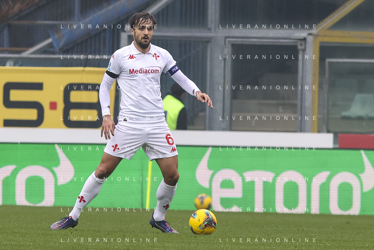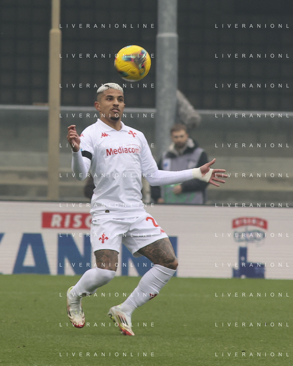 Luca Ranieri of ACF Fiorentina play the ball during Hellas Verona FC vs ACF Fiorentina, 26° Serie A Enilive 2024-25 game at Marcantonio Bentegodi stadium in Verona (VR), Italy, on February 23, 2025. (Photo by Davide Casentini)- AGENZIA ALDO LIVERANI SAS