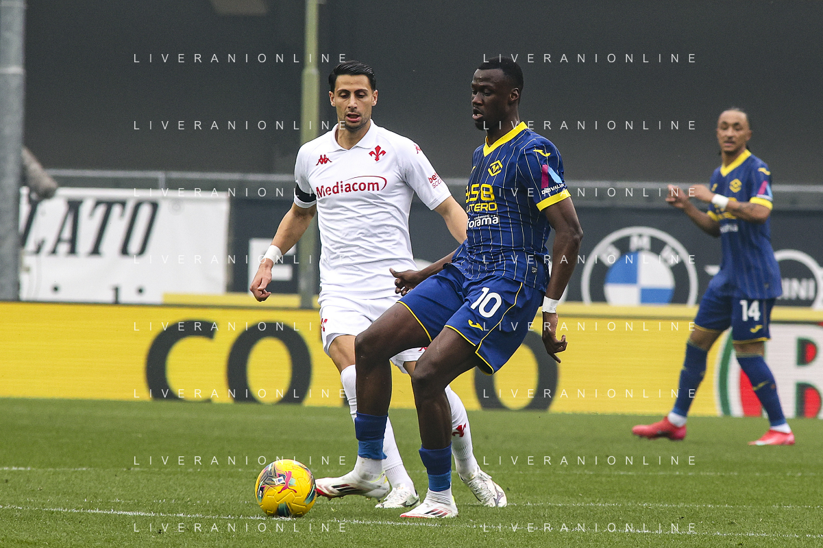 Cheikh Niasse of Hellas Verona FC play the ball during Hellas Verona FC vs ACF Fiorentina, 26° Serie A Enilive 2024-25 game at Marcantonio Bentegodi stadium in Verona (VR), Italy, on February 23, 2025. (Photo by Davide Casentini)- AGENZIA ALDO LIVERANI SAS