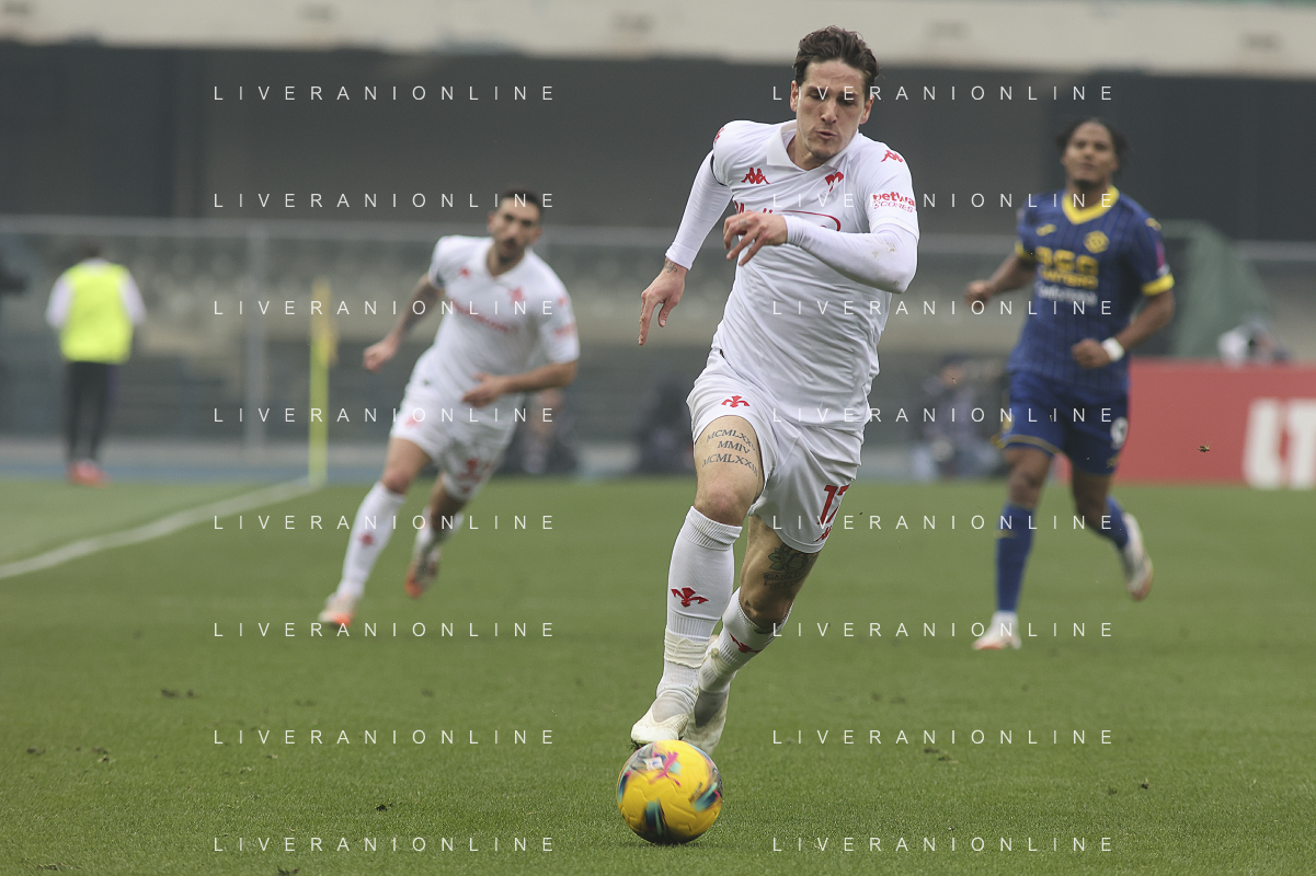 Nicolo’ Zaniolo of ACF Fiorentina play the ball during Hellas Verona FC vs ACF Fiorentina, 26° Serie A Enilive 2024-25 game at Marcantonio Bentegodi stadium in Verona (VR), Italy, on February 23, 2025. (Photo by Davide Casentini)- AGENZIA ALDO LIVERANI SAS
