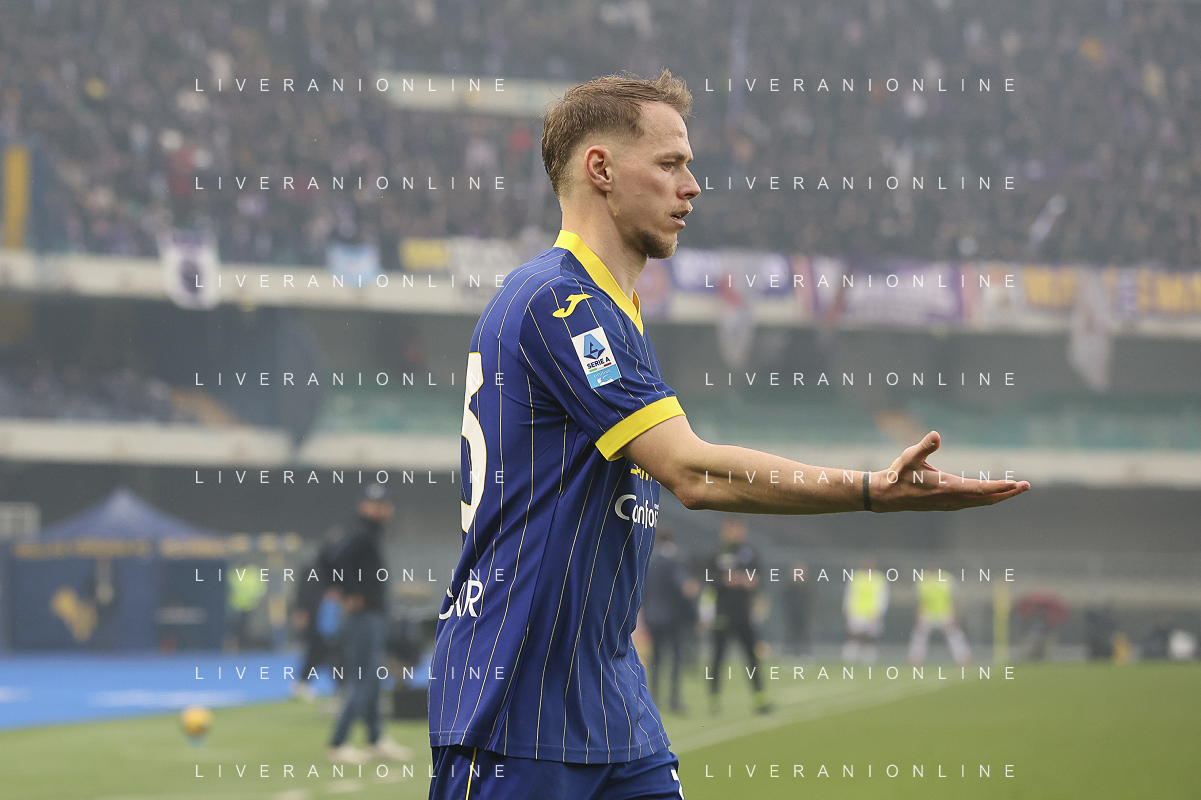 Tomas Suslov of Hellas Verona FC delusaione1 during Hellas Verona FC vs ACF Fiorentina, 26° Serie A Enilive 2024-25 game at Marcantonio Bentegodi stadium in Verona (VR), Italy, on February 23, 2025. (Photo by Davide Casentini)- AGENZIA ALDO LIVERANI SAS