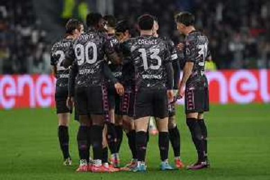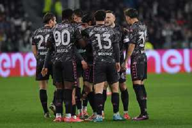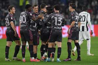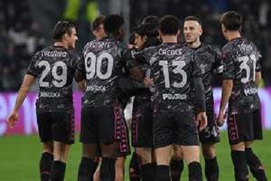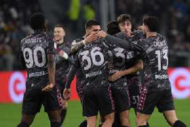 TVMV-Torino 26.02.2025 Allianz Stadium ©Manuela Viganti/Agenzia Aldo Liverani Juventus vs Empoli Quarti di Finale Coppa Italia Frecciarossa 2024/2025 Nella foto: esultanza empoli dopo il gol di youssef maleh ©Viganti - AGENZIA ALDO LIVERANI SAS
