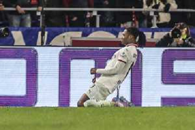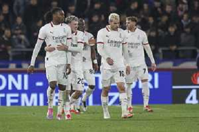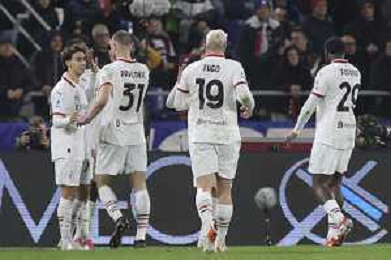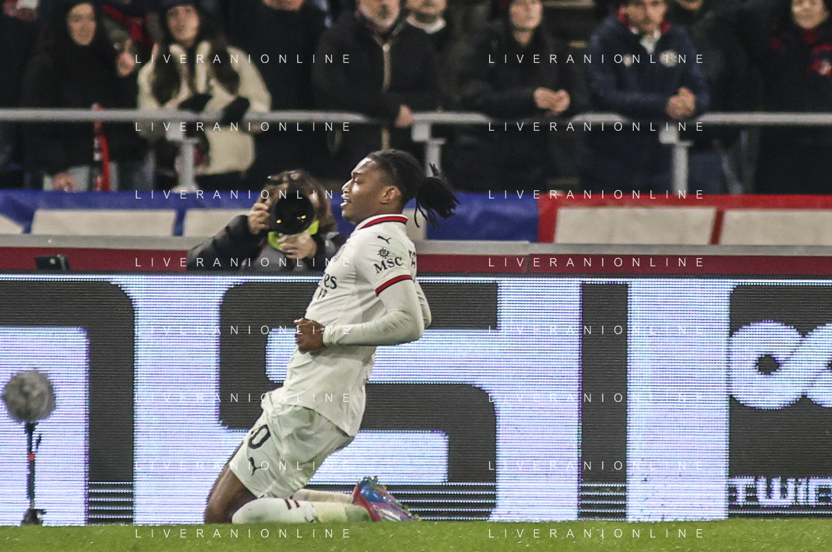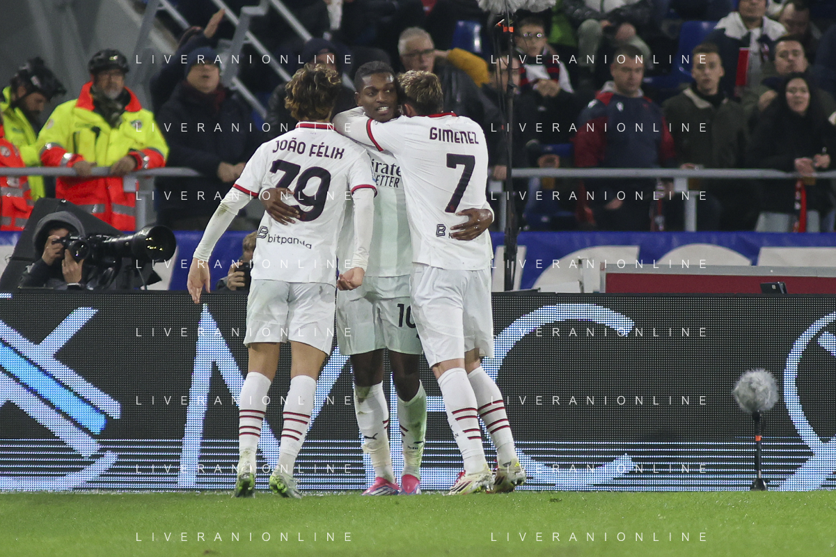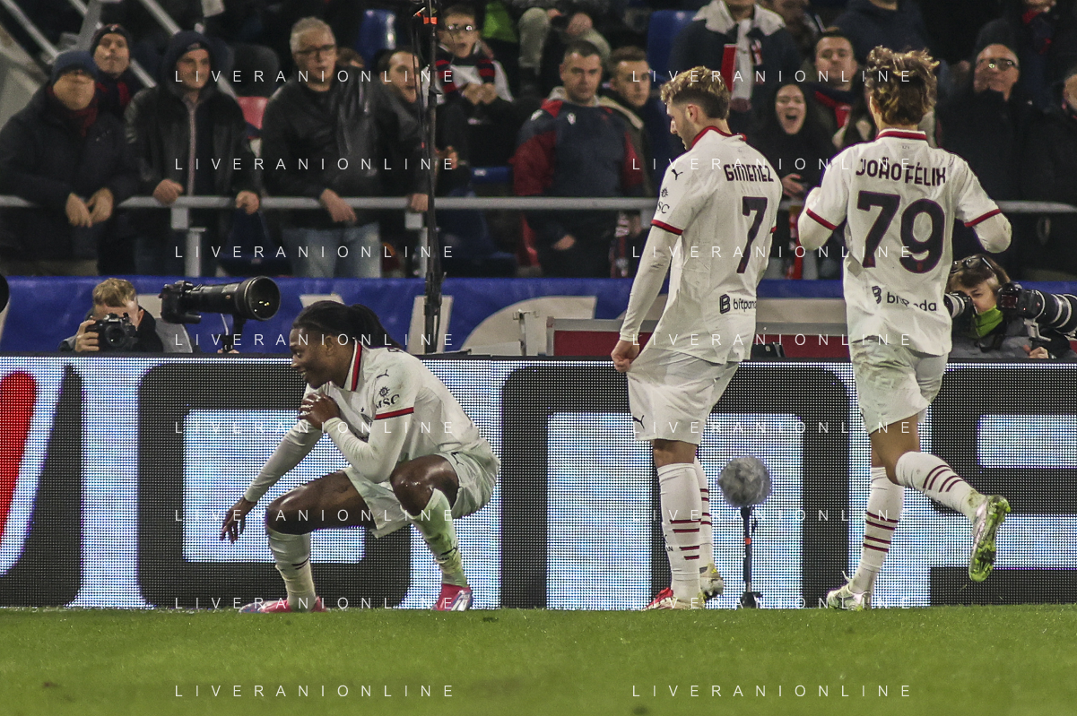 Rafael Leao of AC Milan celebrates after scoring goal during Bologna BFC vs AC Milan, 9° Serie A Enilive 2024-25 game at Renato Dall'Ara stadium in Bologna (BO), Italy, on February 27, 2025. (Photo by Davide Casentini)- AGENZIA ALDO LIVERANI SAS