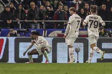 Dan Ndoye of Bologna FC delusione after Rafael Leao of AC Milan goal during Bologna BFC vs AC Milan, 9° Serie A Enilive 2024-25 game at Renato Dall'Ara stadium in Bologna (BO), Italy, on February 27, 2025. (Photo by Davide Casentini)- AGENZIA ALDO LIVERANI SAS