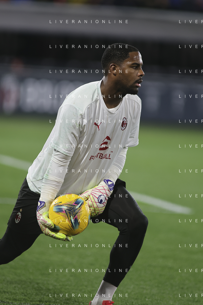 Mike Maignan of AC Milan before Bologna BFC vs AC Milan, 9° Serie A Enilive 2024-25 game at Renato Dall'Ara stadium in Bologna (BO), Italy, on February 27, 2025. (Photo by Davide Casentini)- AGENZIA ALDO LIVERANI SAS