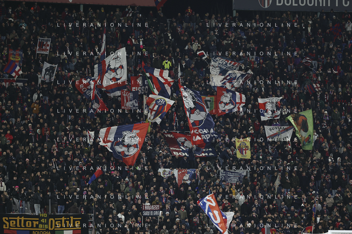 tifosi - Bologna fans show their support during Bologna BFC vs AC Milan, 9° Serie A Enilive 2024-25 game at Renato Dall'Ara stadium in Bologna (BO), Italy, on February 27, 2025. (Photo by Davide Casentini)- AGENZIA ALDO LIVERANI SAS