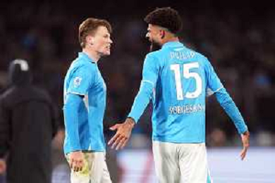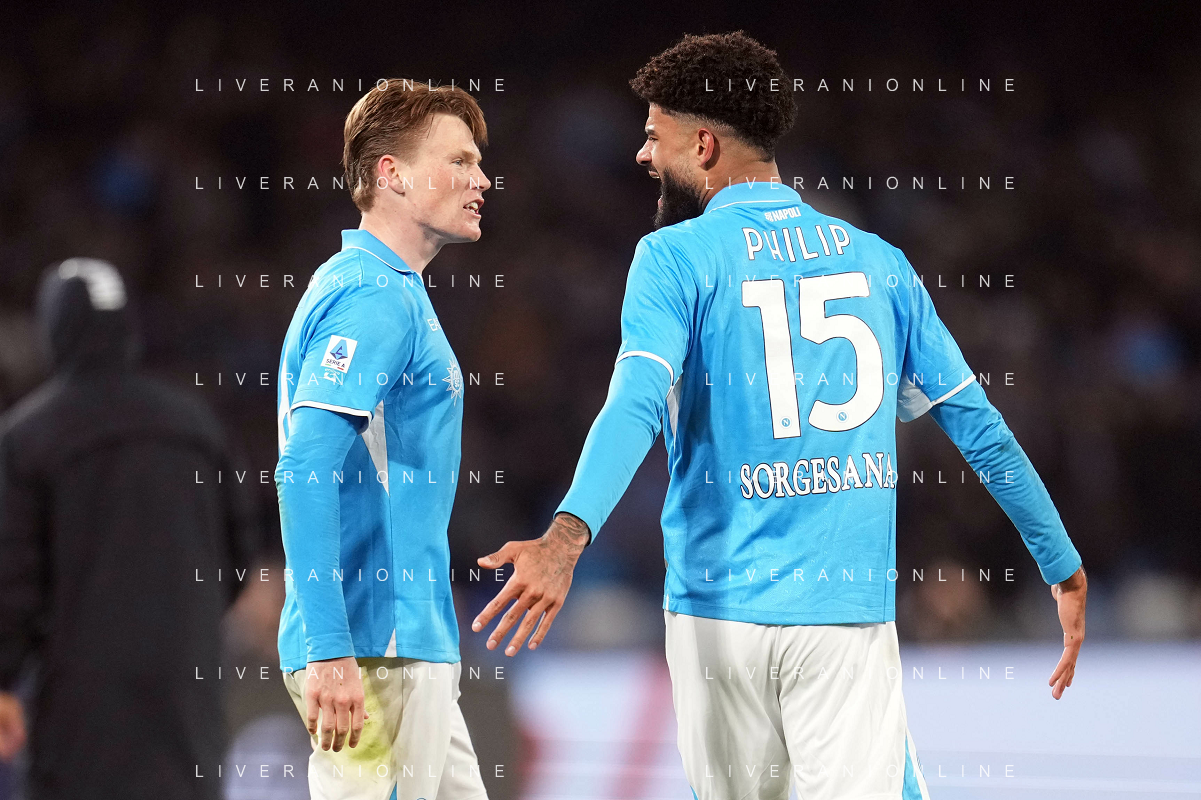 NAPOLI - INTER CAMPIONATO CALCIO SERIE A 01.03.2025 Nella foto: esultanza dopo il gol del pareggio di Philip Billing con Scott McTominay Foto Mosca, Ag.Liverani- AGENZIA ALDO LIVERANI SAS