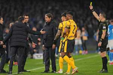 NAPOLI - INTER CAMPIONATO CALCIO SERIE A 01.03.2025 Nella foto: Ammonizione Simone Inzaghi Foto Mosca, Ag.Liverani- AGENZIA ALDO LIVERANI SAS
