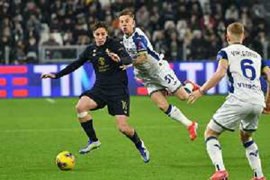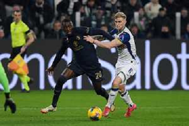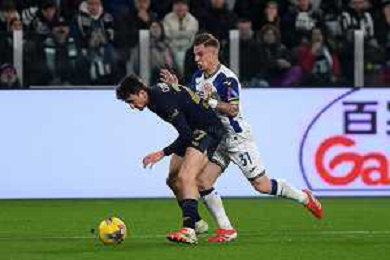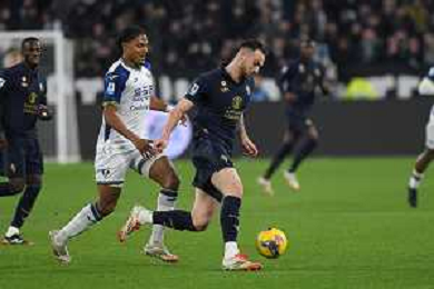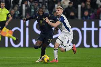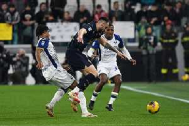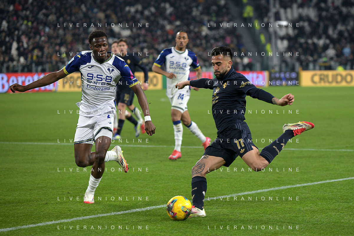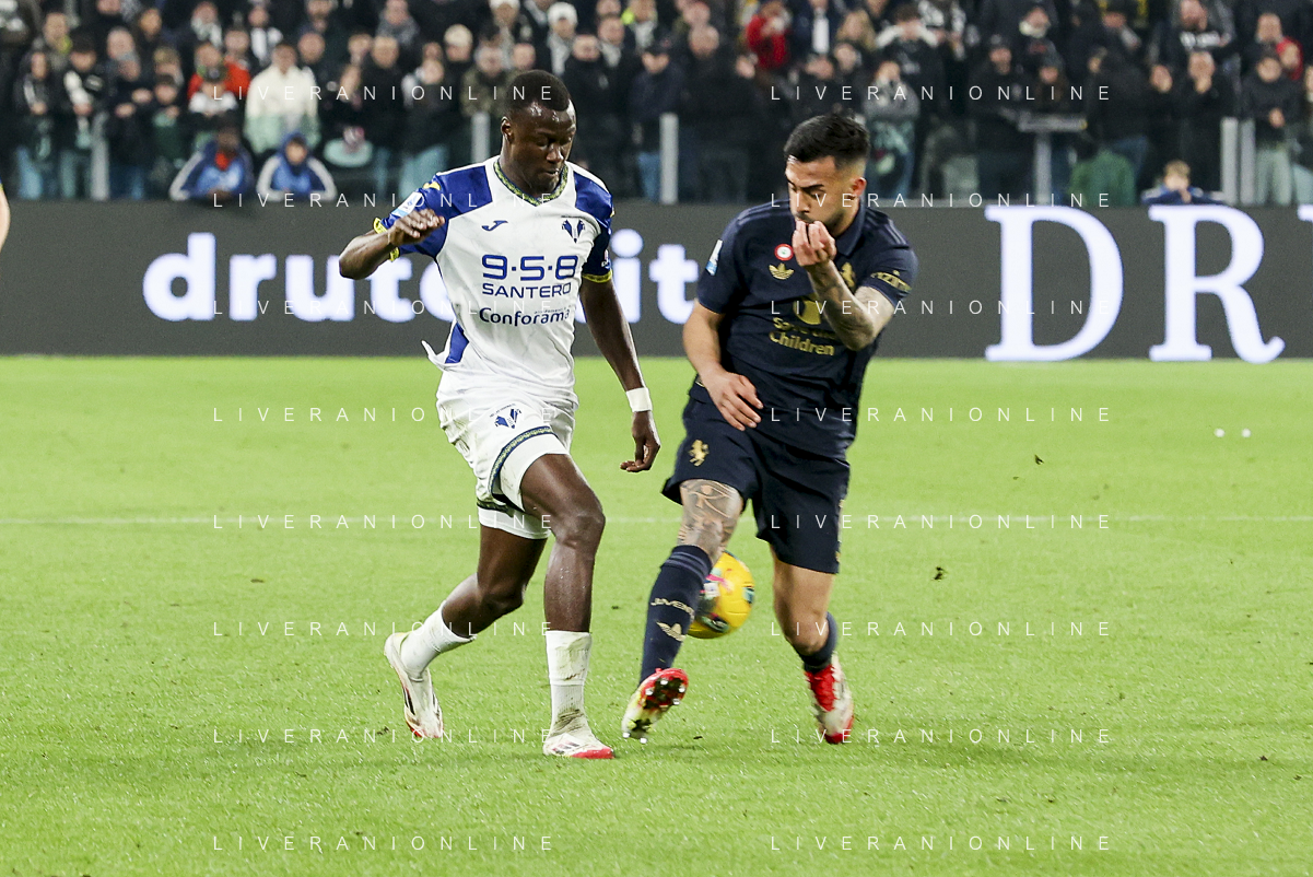 Cheikh Niasse of Hellas Verona FC competes for the ball with Nicolas Gonzalez of Juventus FC during Juventus FC vs Hellas Verona FC, 27° Serie A Enilive 2024-25 game at Allianz Stadium in Torino (TO), Italy, on March 03, 2025. (Photo by Davide Casentini) - AG ALDO LIVERANI SAS