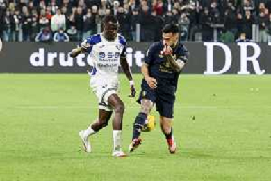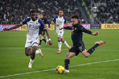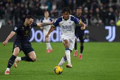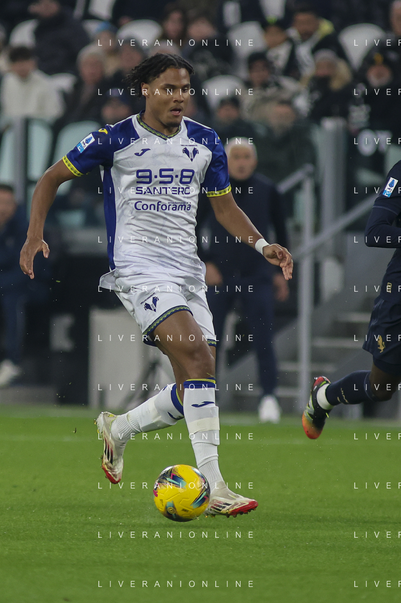 Amin Sarr of Hellas Verona FC play the ball during Juventus FC vs Hellas Verona FC, 27° Serie A Enilive 2024-25 game at Allianz Stadium in Torino (TO), Italy, on March 03, 2025. (Photo by Davide Casentini) - AG ALDO LIVERANI SAS