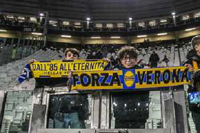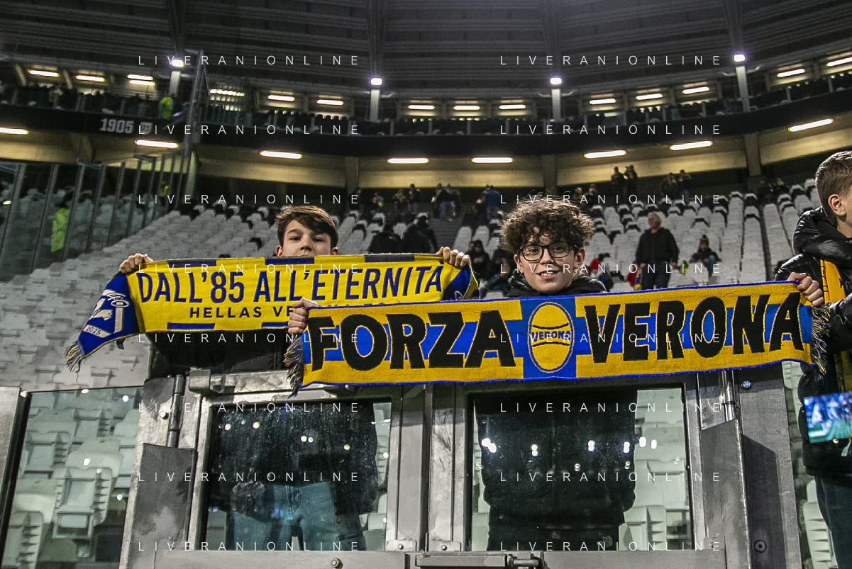 Tifosi - Hellas Verona fans show their support during Juventus FC vs Hellas Verona FC, 27° Serie A Enilive 2024-25 game at Allianz Stadium in Torino (TO), Italy, on March 03, 2025. (Photo by Davide Casentini) - AG ALDO LIVERANI SAS