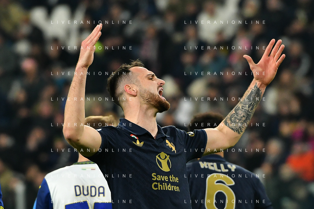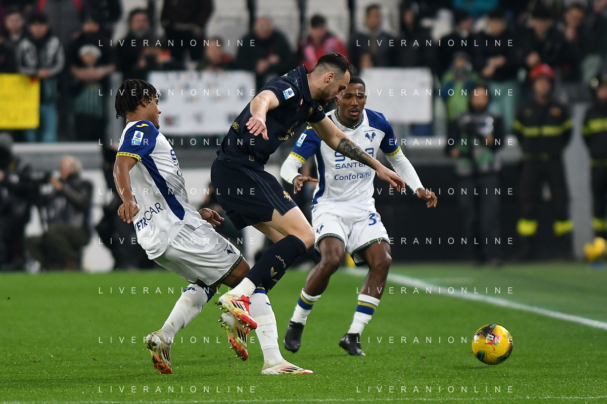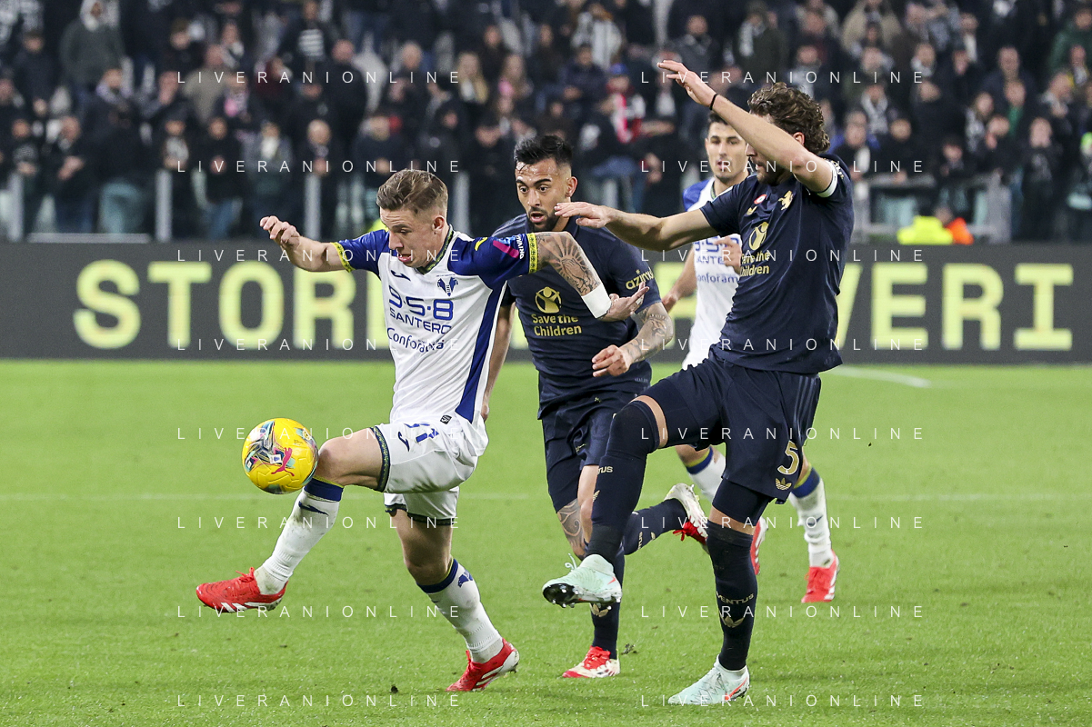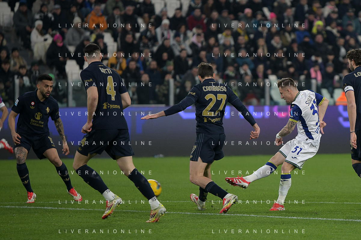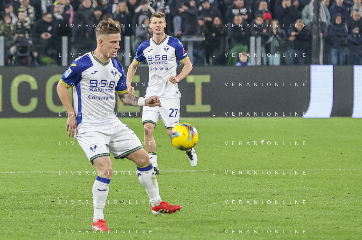 Tomas Suslov of Hellas Verona FC play the ball during Juventus FC vs Hellas Verona FC, 27° Serie A Enilive 2024-25 game at Allianz Stadium in Torino (TO), Italy, on March 03, 2025. (Photo by Davide Casentini) - AG ALDO LIVERANI SAS