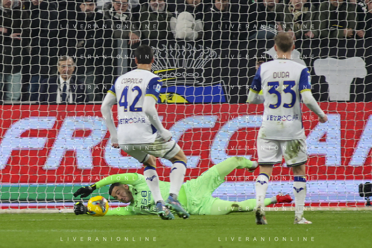 Lorenzo Montipo’ of Hellas Verona FC makes a save during Juventus FC vs Hellas Verona FC, 27° Serie A Enilive 2024-25 game at Allianz Stadium in Torino (TO), Italy, on March 03, 2025. (Photo by Davide Casentini) - AG ALDO LIVERANI SAS