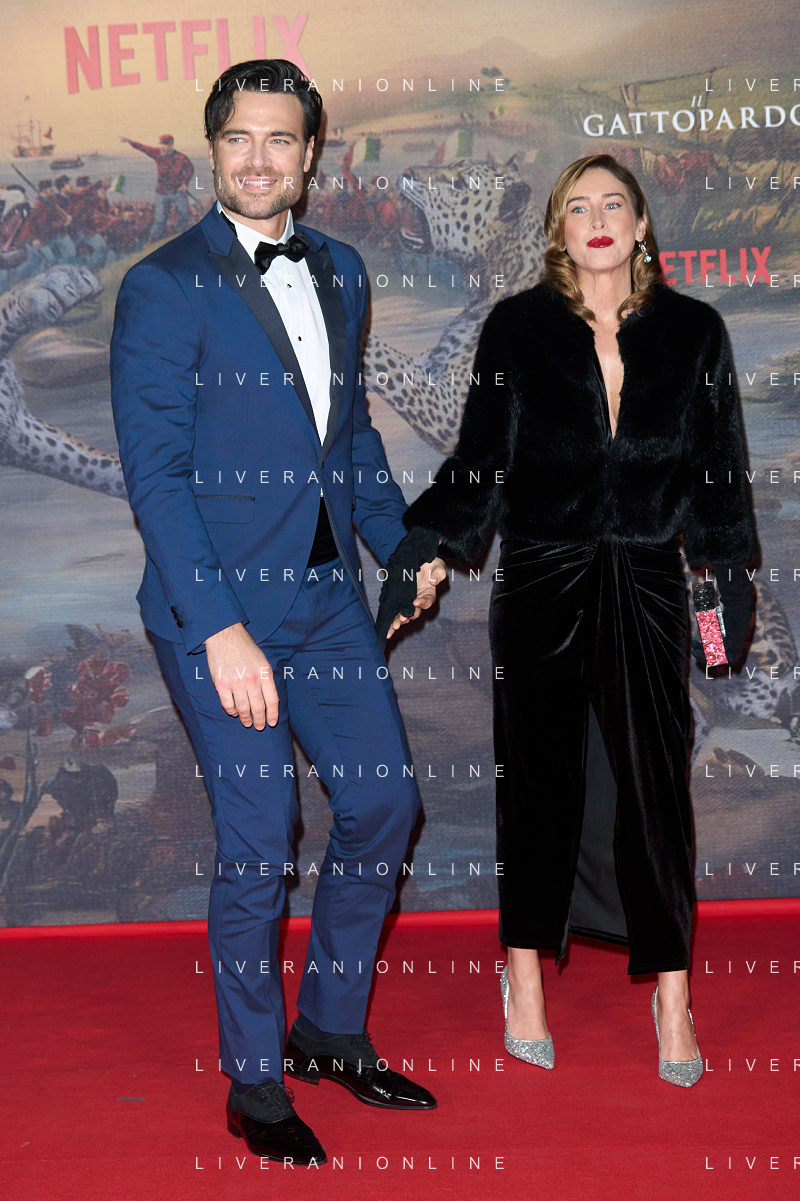 Roma - 03/03/2025 Red Carpet per la premiere della Serie TV Netflix IL GATTOPARDO nella foto: Giulio Berruti - Maria Elena Boschi ANDREA BRACAGLIA- AG ALDO LIVERANI SAS