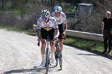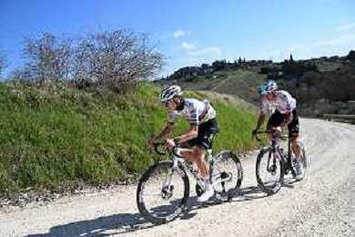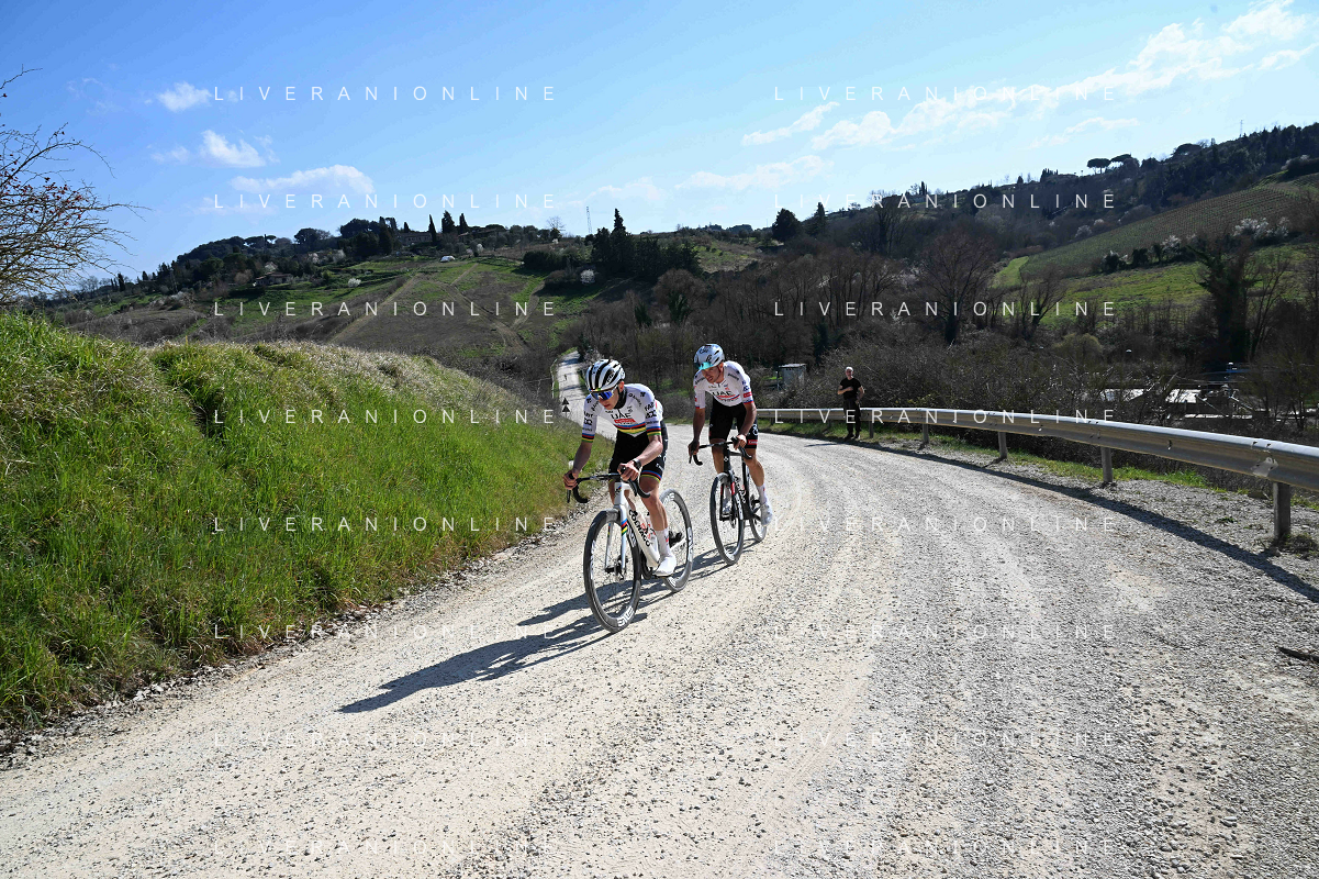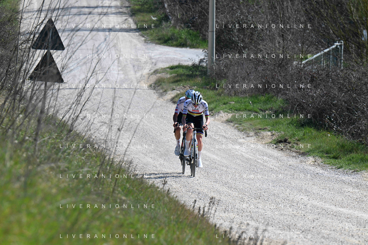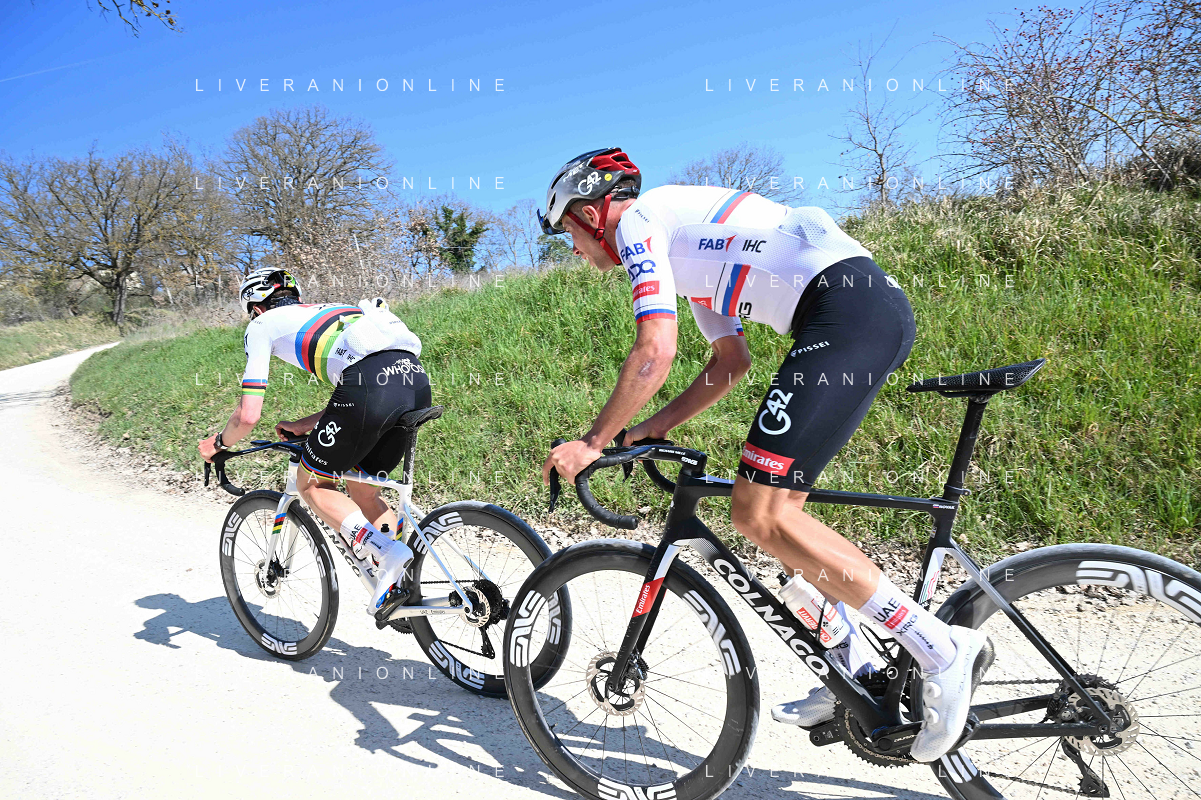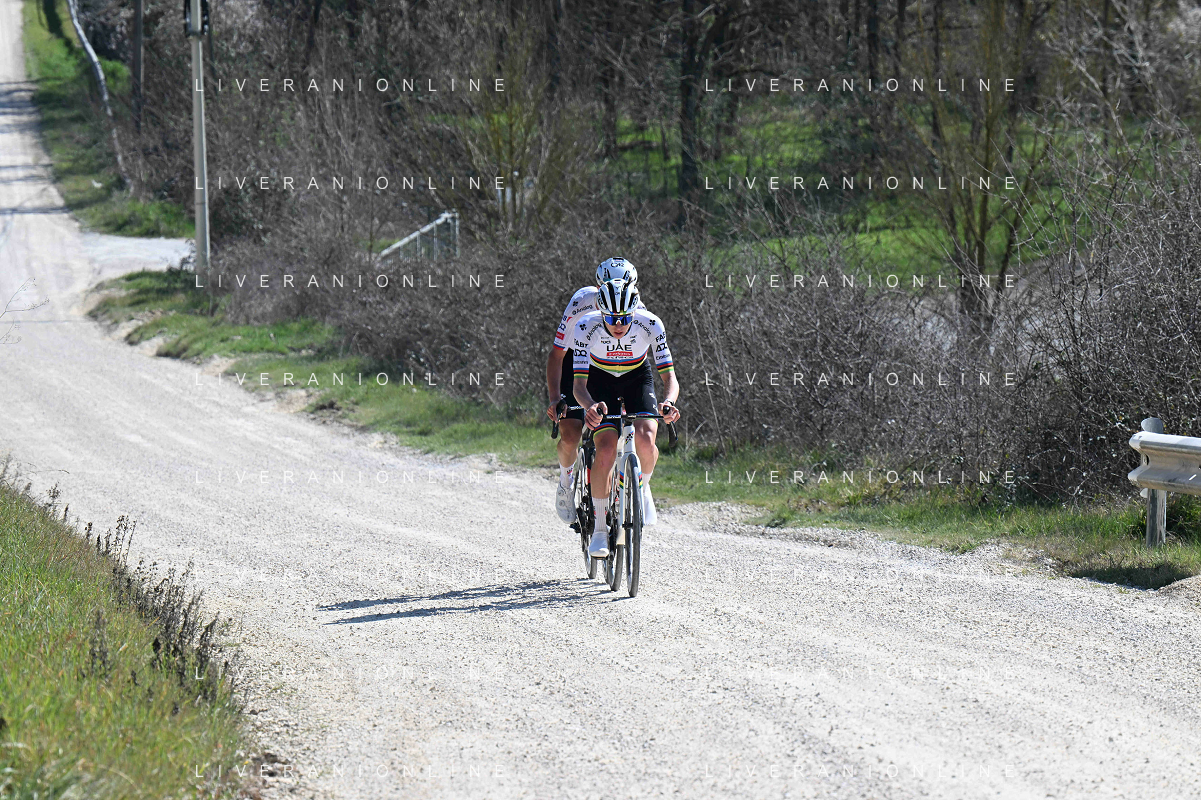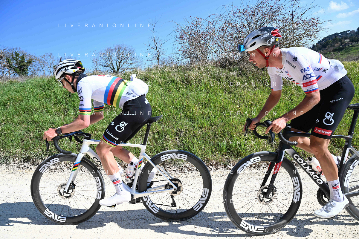 06-03-2025 Allenamento Strade Bianche 2025; 2025, Uae Team Emirates - Xrg; Pogacar, Tadej; Novak, Domen; Le Tolfe; ©SIROTTI - AGENZIA ALDO LIVERANI SAS
