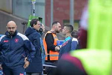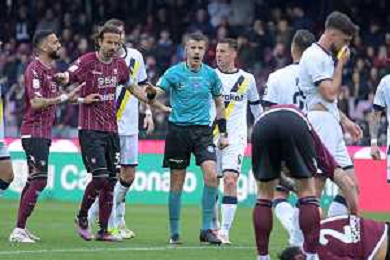 08 03 2025 - Salerno. Stadio Arechi. Campionato Serie B. Salernitana-Modena Nella foto gian marco ferrari, l'arbitro antonio giua Foto Giuseppe Cuozzo/Agenzia Liverani- AGENZIA ALDO LIVERANI SAS