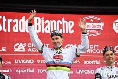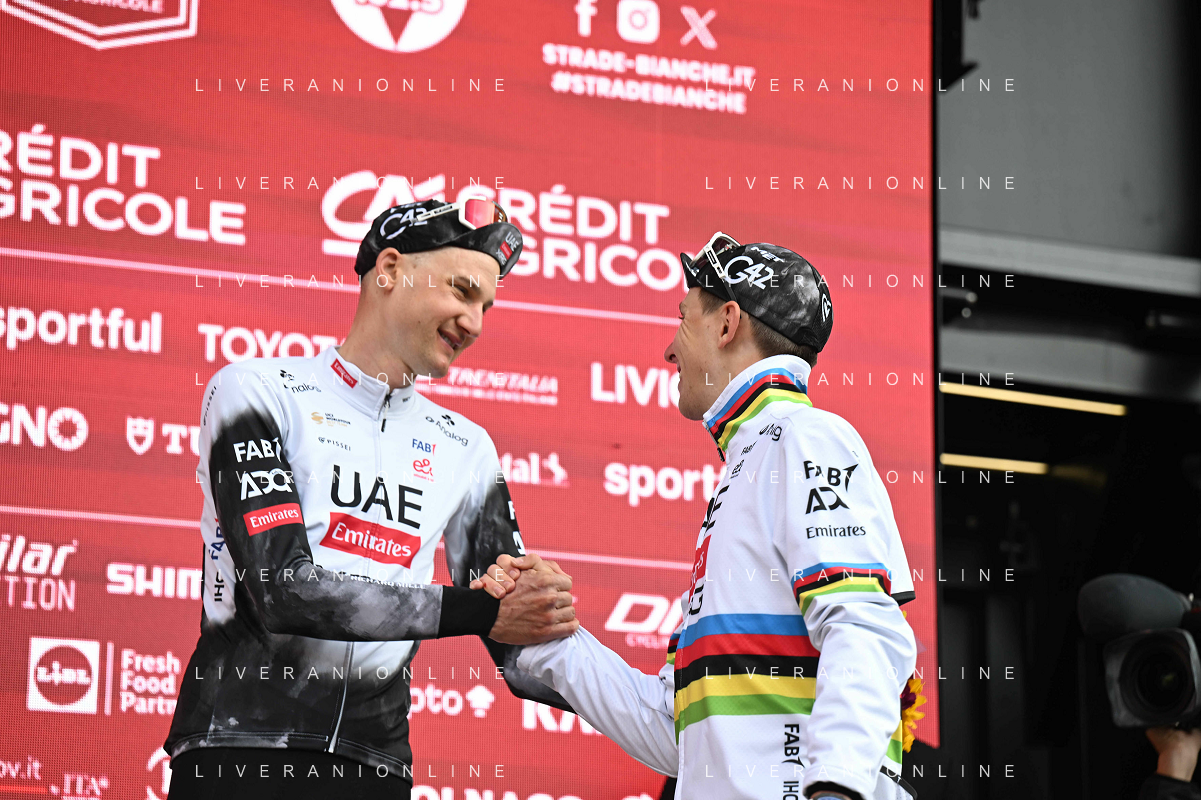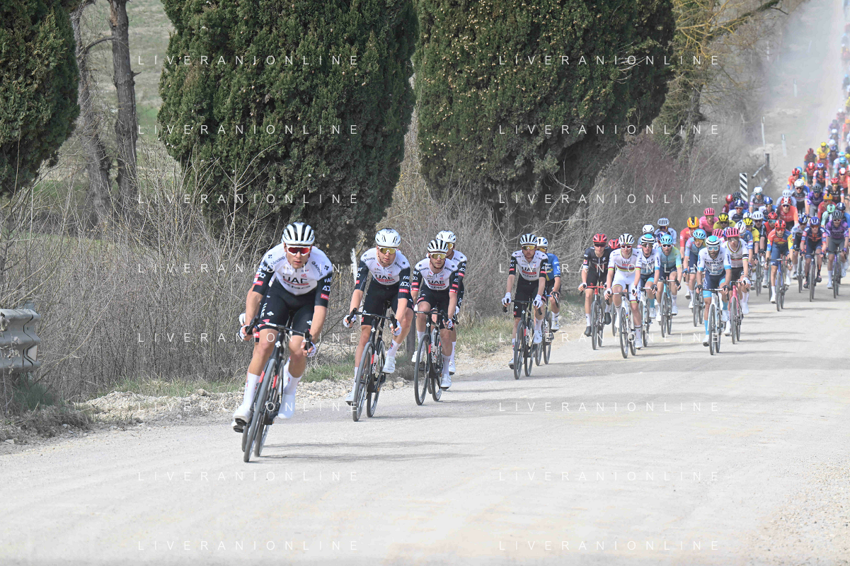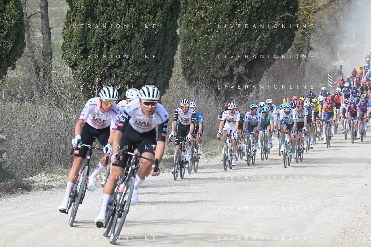 08-03-2025 Strade Bianche; 2025, Uae Team Emirates - Xrg; Pogacar, Tadej; Bagnaia; ©SIROTTI - AGENZIA ALDO LIVERANI SAS