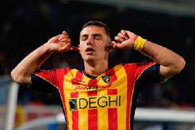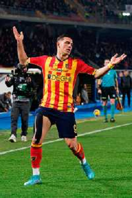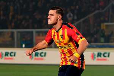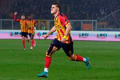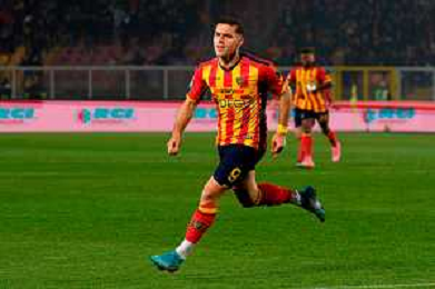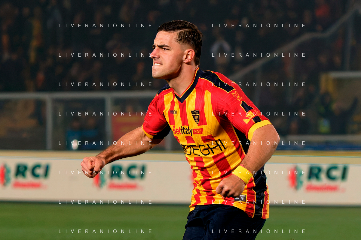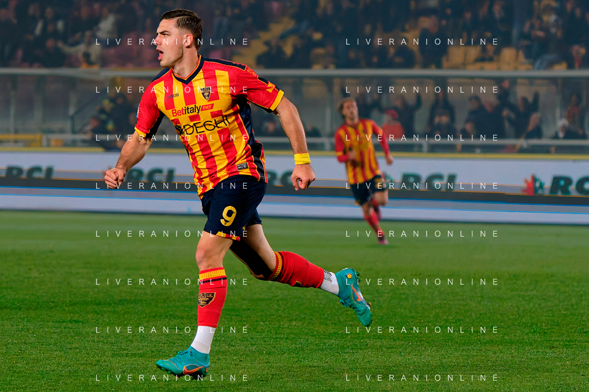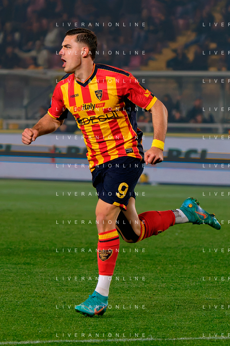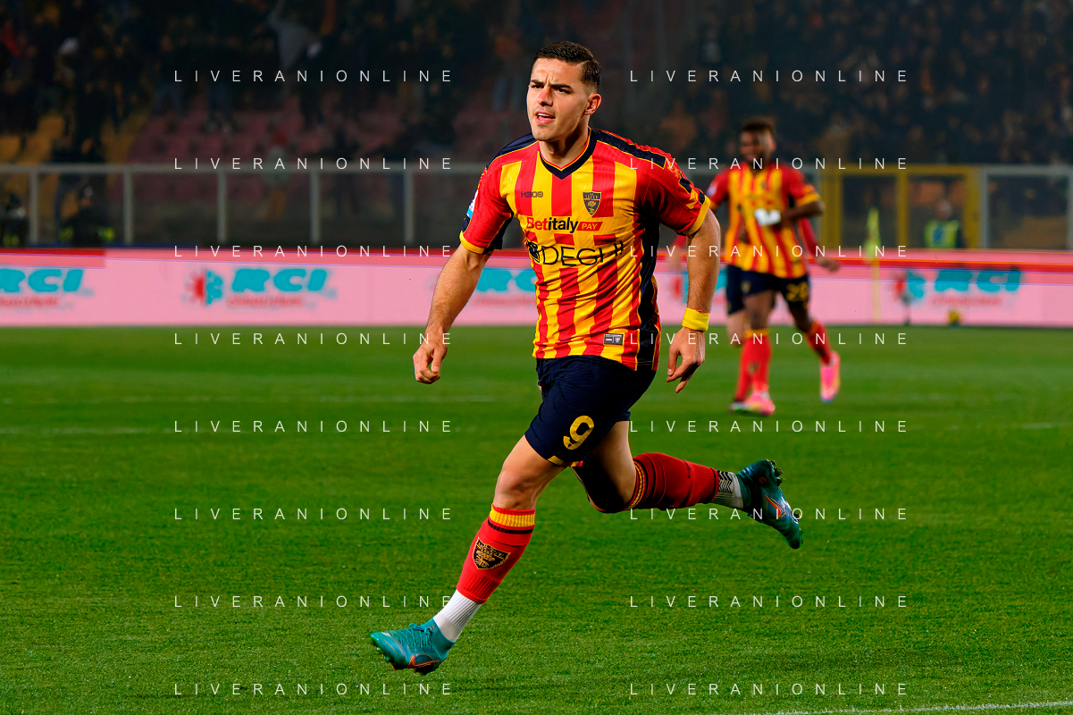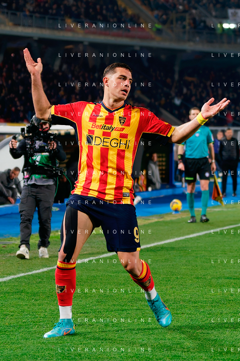 TVEM March 8, 2025 Lecce, Italy - US Lecce vs AC Milan - Italian soccer serie A 2024/25 - Via Del Mare Stadium. In the pic: Nikola Krstovic of US Lecce celebrates after scoring a goal foto emmanuele mastodonato-ag aldo liverani sas