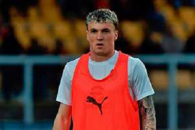 TVEM March 8, 2025 Lecce, Italy - US Lecce vs AC Milan - Italian soccer serie A 2024/25 - Via Del Mare Stadium. In the pic: Nikola Krstovic of US Lecce foto emmanuele mastodonato-ag aldo liverani sas