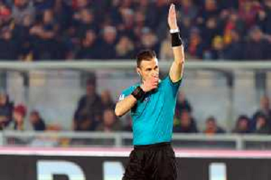 TVEM March 8, 2025 Lecce, Italy - US Lecce vs AC Milan - Italian soccer serie A 2024/25 - Via Del Mare Stadium. In the pic: the referee Daniele Doveri of Roma foto emmanuele mastodonato-ag aldo liverani sas
