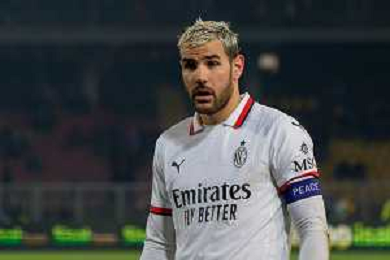 TVEM March 8, 2025 Lecce, Italy - US Lecce vs AC Milan - Italian soccer serie A 2024/25 - Via Del Mare Stadium. In the pic: Theo Hernandez of AC Milan foto emmanuele mastodonato-ag aldo liverani sas
