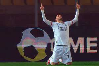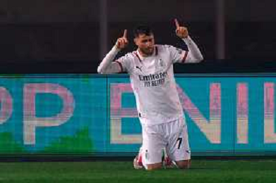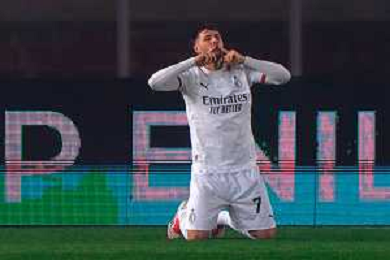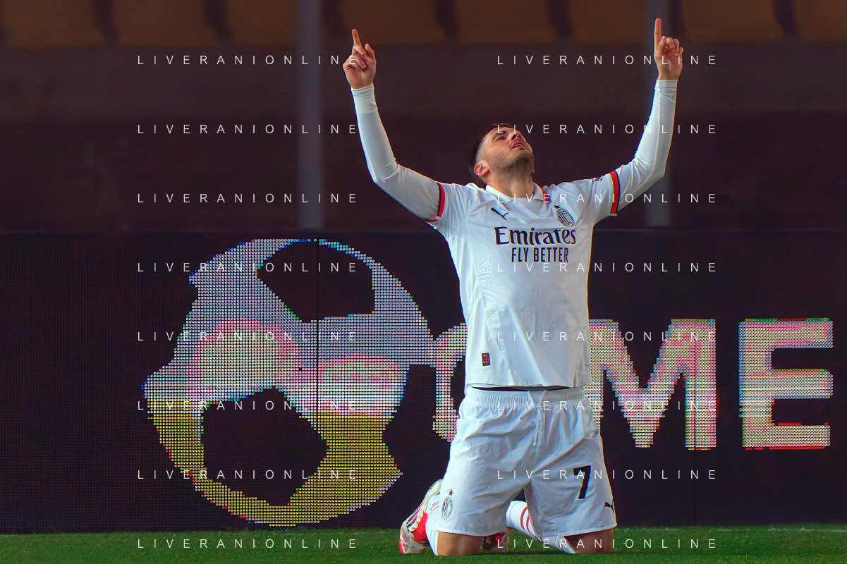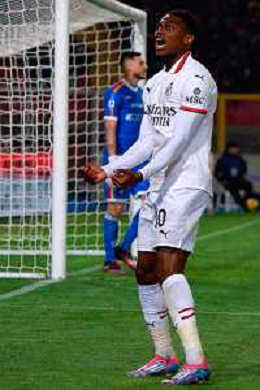TVEM March 8, 2025 Lecce, Italy - US Lecce vs AC Milan - Italian soccer serie A 2024/25 - Via Del Mare Stadium. In the pic: Rafael Leao of AC Milan celebrates foto emmanuele mastodonato-ag aldo liverani sas