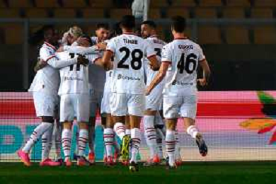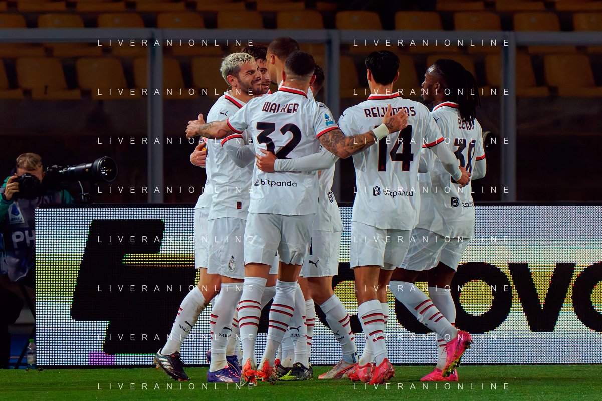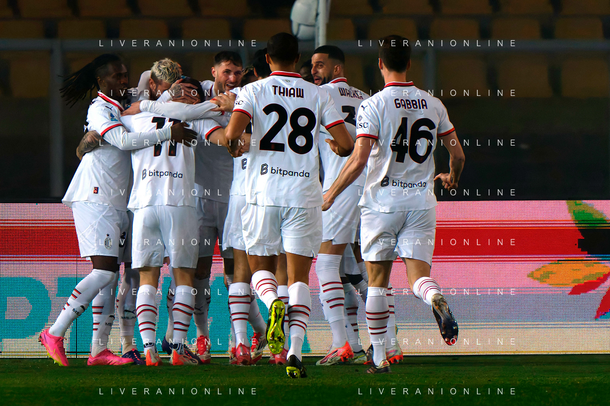 TVEM March 8, 2025 Lecce, Italy - US Lecce vs AC Milan - Italian soccer serie A 2024/25 - Via Del Mare Stadium. In the pic: Players of AC Milan celebrates foto emmanuele mastodonato-ag aldo liverani sas