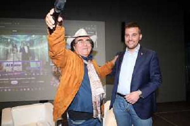 IMOLA 09 03 2025 AUTODROMO ENZO E DINO FERRARI ALBANO CARRISI PRESENTA IL SUO LIBRO NELLA FOTO ALBANO CARRISI E SINDACO MARCO PANIERI CANTANO LA CANZONE FELICITA' FOTO GIANNI SANNA-AG ALDO LIVERANI SAS