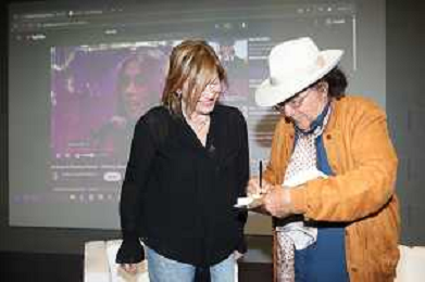 IMOLA 09 03 2025 AUTODROMO ENZO E DINO FERRARI ALBANO CARRISI PRESENTA IL SUO LIBRO NELLA FOTO LORENZA RAVAGLIA E ALBANO CARRISI AUTOGRAFO PER LA BIBLIOTECA DI IMOLA ©SANNA - AGENZIA ALDO LIVERANI SAS