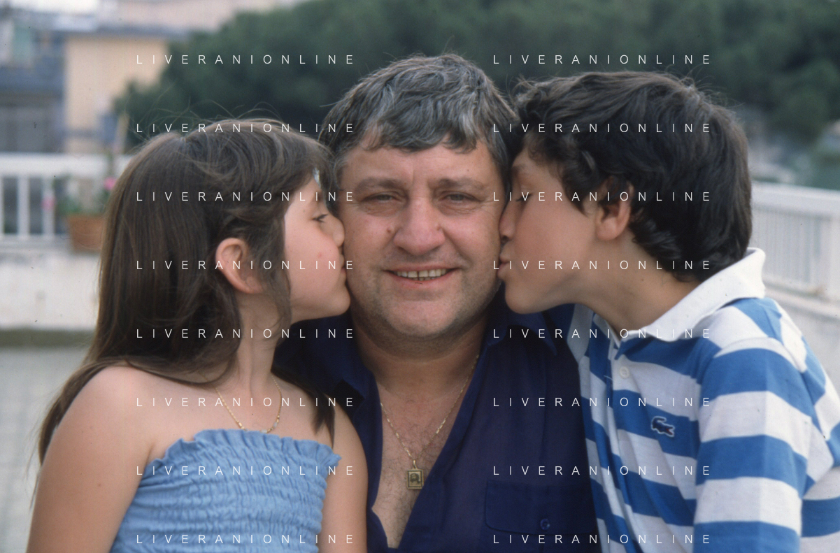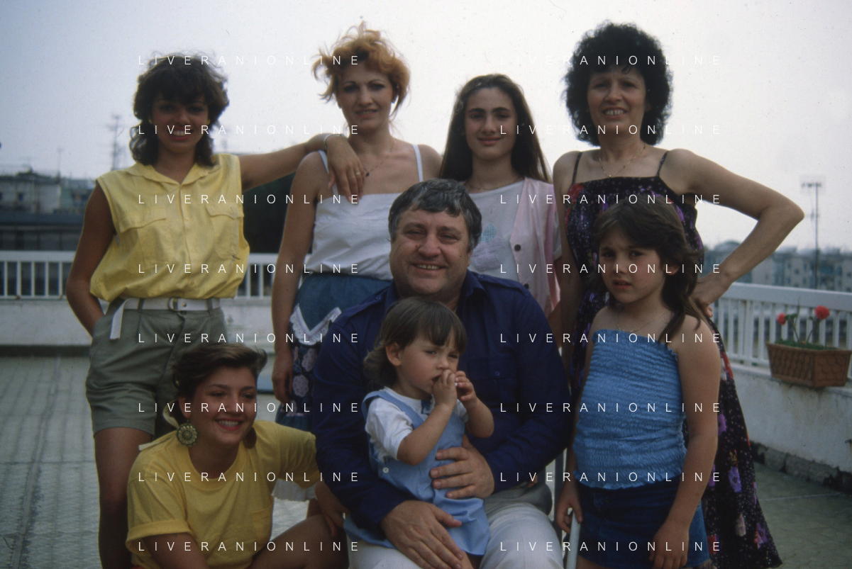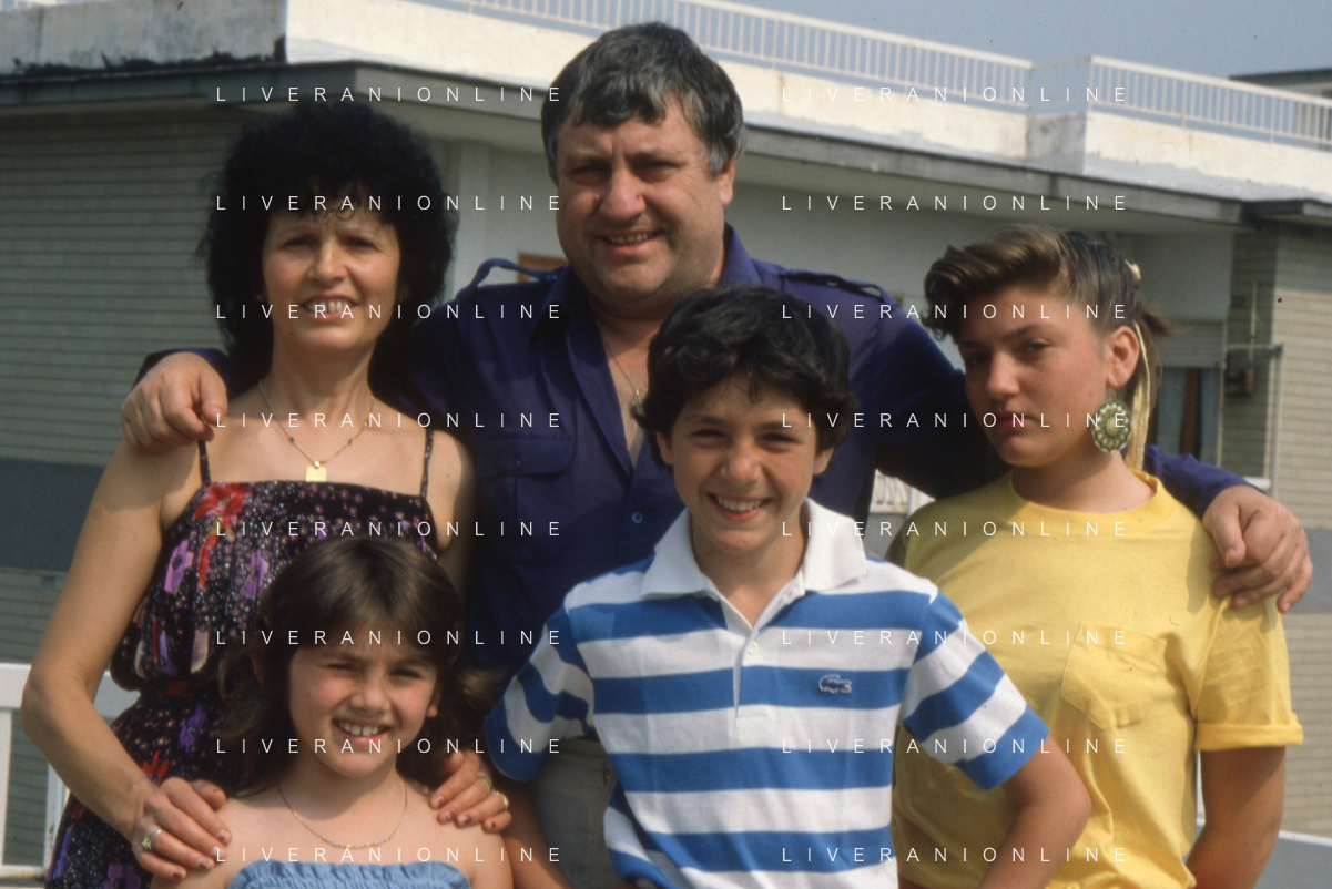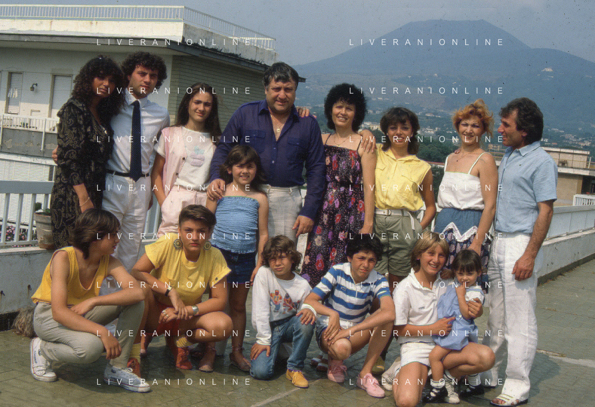 DIAP-RETROSPETTIVA MARIO MEROLA CANTANTE E ATTORE NELLA FOTO MARIO MEROLA NELL'ANNO 1983 CON LA MOGLIE ROSA SERRAPIGLIA E I FIGLI A NAPOLI AG ALDO LIVERANI SAS